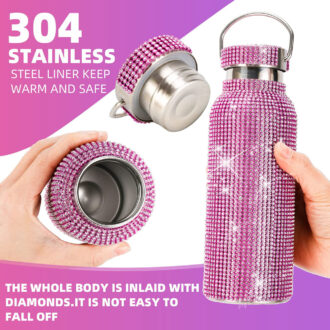 Rhinestone Smart Thermos Tumbler Diamond-Embellished Vacuum Insulated Stainless Steel Temperature Display Bling Water Bottle